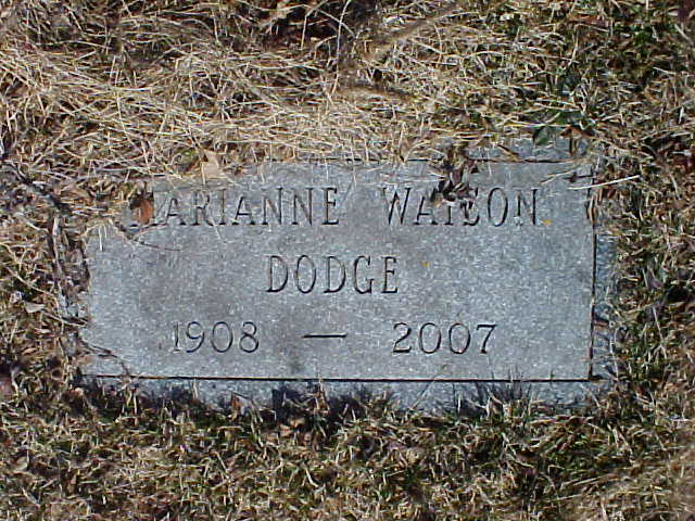[headstone front] DODGE [headstone back] DOANE [footstone] MARIANNE WATSON / DODGE / 1908-2007 |