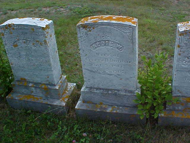 [front] DOUGLAS [back] CHARLES L. DOUGLAS / 1839 - 1875 / MARY J. HIS WIFE / 1838 - 1886 / THEIR DAUGHTERS / DORA 1868 - 1874 / CLARA 1874 - 1876 [footstone] ADA B. / 1866 -1933 |