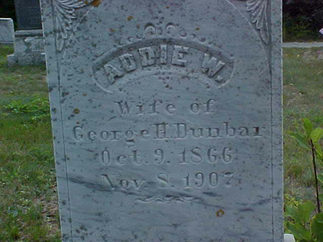 DUNBAR / FRANK W. / 1868-1918 / WIFE / LAURA E. WARDWELL / 1871-1955 / NELLIE / 1895-1899 |
