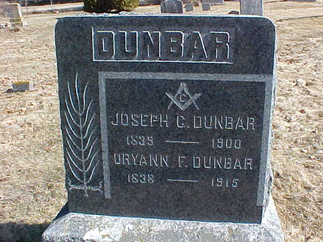 [front] DUNBAR / JOSEPH G. DUNBAR / 1839-1900 / ORYANN F. DUNBAR / 1838-1916 [back] JOSEPH / 1867-1883 / LUCY 1872-1893 |