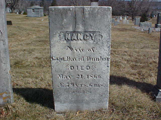NANCY / Wife of / Capt. David Dunbar / DIED / May 21, 1866, / Æ. 79 yrs. 6 ms. |