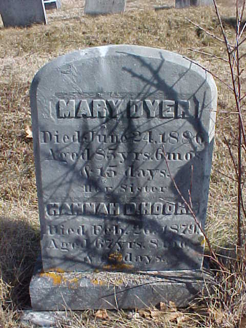 MARY DYER / Died June 24, 1886, / Aged 85 yrs. 6 mos. / & 15 days / Her Sister / HANNAH D. HOOKE / Died Feb. 26, 1879, / Aged 67 yrs. 8 mos. / & 18 days. |